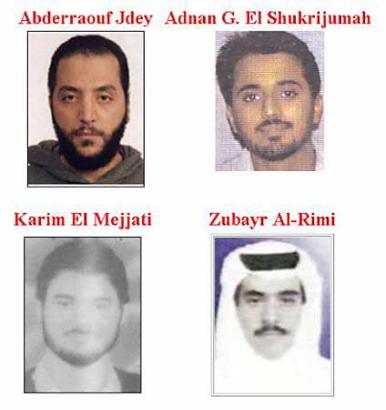 據(jù)報道,這4名男子中兩人來自沙特阿拉伯,另外兩人分別來自摩洛哥和突尼斯。其中28歲的沙特男子舒克里朱馬是“基地”組織的一個策劃者,其地位與“9·11”事件主要策劃者阿塔相似。