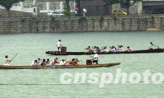 “2003年澳門亞太城市龍舟邀請(qǐng)賽”開鑼在即,六日已有部分參賽隊(duì)伍在南灣湖冒雨練兵。中新社記者:李剛