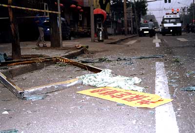 據(jù)北京娛樂(lè)信報(bào)報(bào)道,肉餅店臨街的一扇門和三個(gè)窗戶全部被炸碎,馬路中間全是炸飛的碎玻璃,并有門窗框被炸飛到馬路對(duì)面。酒吧和肉餅店的所有窗戶都被炸壞。