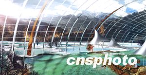 在四川省著名風(fēng)景區(qū)九寨溝旁邊二十公里的甘海子森林里,今秋時(shí)節(jié)正在為明年的世界環(huán)境與發(fā)展論壇建造國際會(huì)議度假中心。圖為全透明玻璃結(jié)構(gòu)的溫泉中心工地。中新社記者:賈國榮