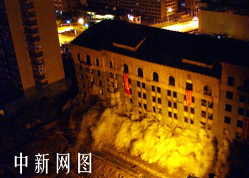 爆破中的中華全國總工會(huì)大樓。中新社記者 鄒憲攝