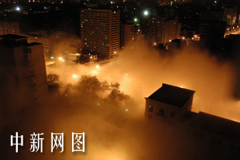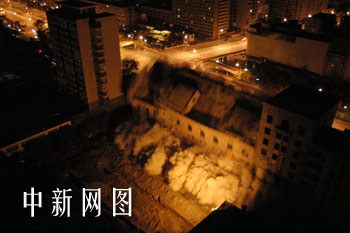 爆破中的中華全國總工會(huì)大樓。中新社記者 武仲林?jǐn)z