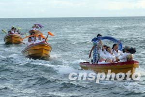 九月十三日晚,2003年新絲路中國模特大賽在海南三亞的天涯海角的海灘舞臺上進行最后的排練,這次決賽的參賽模特將從海上登陸演出舞臺。中新社記者:盛佳鵬