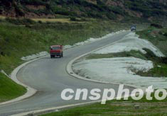 中國在著名觀光勝地四川省九寨溝新建的機(jī)場,即將在九月二十八日通航。暢通的機(jī)場高原公路兩邊采用薄膜養(yǎng)草術(shù)保護(hù)環(huán)境。中新社記者:賈國榮
