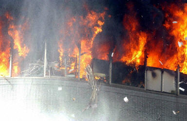 監(jiān)控人質(zhì)情況的電視攝像機(jī)拍下了爆炸的情形。爆炸發(fā)生在當(dāng)?shù)貢r(shí)間下午1點(diǎn)鐘(北京時(shí)間中午12點(diǎn))左右,爆炸的沖擊波震飛了四樓一家速遞公司的窗戶(hù),碎裂的玻璃和紛飛的文件像雨點(diǎn)一樣落到樓下街道上。鏡頭還拍到一名傷者被救援人員抬走。