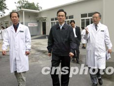 中共北京市委副書(shū)記龍新民(中),9月18日到北京協(xié)和醫(yī)院等醫(yī)療機(jī)構(gòu)檢查落實(shí)北京市嚴(yán)防SARS緊急預(yù)案落實(shí)情況。中新社記者:任晨鳴