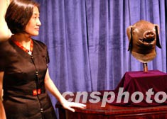中華社會(huì)文化發(fā)展基金會(huì),九月十八日在香港舉行“搶救流失海外文物”新聞發(fā)布會(huì),中華社會(huì)文化發(fā)展基金會(huì)官員在會(huì)上向香港傳媒介紹流失海外文物《清.圓明園豬首銅像》。 中新社記者:錢興強(qiáng)