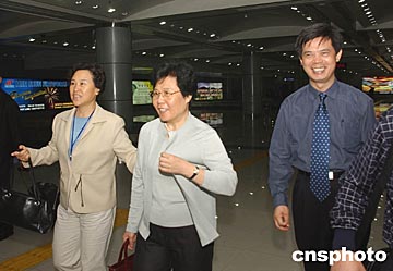 九月二十一日,出席第二屆世界華文傳媒論壇的國務(wù)院僑辦主任陳玉杰(中)抵達長沙,中國新聞社總編輯郭招金(右)等人前往機場迎接。中新社記者:武仲林