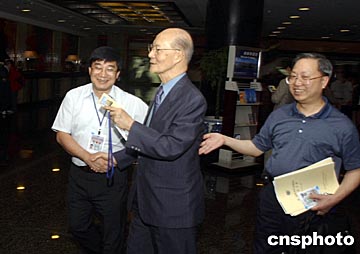 九月二十一日,《澳門日?qǐng)?bào)》社長(zhǎng)李成俊(中)抵達(dá)湖南長(zhǎng)沙,出席此間舉行的第二屆世界華文傳媒論壇。中新社記者:武仲林