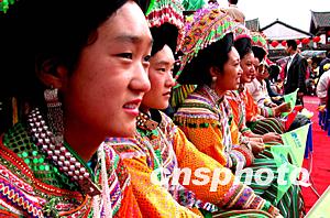 九月二十一日,云南的麗江建立為城市的慶典上,衣著艷麗的傈僳族姑娘格外漂亮。在麗江市人口一百一十一萬(wàn)中,納西、彝、傈僳等十二種少數(shù)民族占百分之五十七點(diǎn)三。中新社記者:納家驊