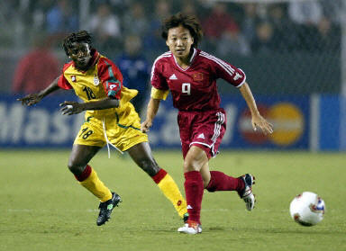 此后,中國隊(duì)繼續(xù)試圖擴(kuò)大比分,不過因?yàn)榕浜仙先狈δ,?duì)方門將發(fā)揮神勇,未能擴(kuò)大比分。因?yàn)橹袊隳挲g偏大,漸漸在場(chǎng)上暴露出體能不足的缺點(diǎn),而體力充沛的加納隊(duì)借機(jī)向中國隊(duì)大舉進(jìn)攻,屢屢造成威脅。