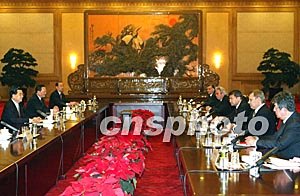 胡錦濤首先對上海合作組織總理會晤的成功舉行并取得重要成果表示祝賀。他說,這次會晤簽署及批準(zhǔn)的《上海合作組織成員國多邊經(jīng)貿(mào)合作綱要》等文件,為六國經(jīng)濟(jì)合作奠定了重要法律基礎(chǔ),必將進(jìn)一步推動(dòng)區(qū)域經(jīng)濟(jì)合作,并為組織的兩個(gè)常設(shè)機(jī)構(gòu)如期啟動(dòng)創(chuàng)造有利條件。