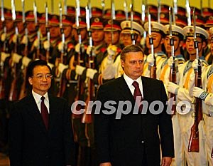 中新社北京九月二十四日電(記者齊彬)中國總理溫家寶今天在人民大會堂與俄羅斯總理卡西亞諾夫舉行會談。會談自始至終充滿了友好氣氛,兩國領(lǐng)導人在雙邊和國際問題上取得了廣泛共識。