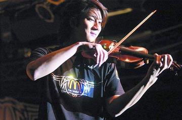 身穿黑色T恤、藍色休閑褲、留著一頭金黃色飄逸長發(fā)的王力宏,一出場就惹得臺下觀眾們的歡呼。接著,他傾情演唱了活動主題曲《我就喜歡》以及經(jīng)典老歌《龍的傳人》,其間更是大顯其他方面的音樂才能,用小提琴演奏了一段《愛的就是你》,將宣傳會帶入高潮。
