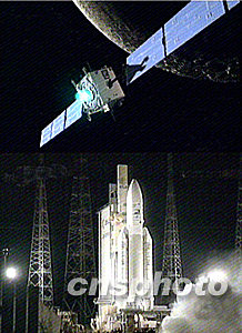 歐洲第一個(gè)月球探測(cè)器“靈敏-1”號(hào),于北京時(shí)間周日上午7點(diǎn)14分搭乘歐洲“阿麗亞娜-5”型火箭從法屬圭亞那地區(qū)庫(kù)魯航天中心成功發(fā)射升空。與“靈敏-1”號(hào)同時(shí)發(fā)射升空的還有兩枚商用衛(wèi)星。預(yù)計(jì)15個(gè)月后,重370公斤的“靈敏-1”號(hào)探測(cè)器,將到達(dá)繞環(huán)月軌道,在月球軌道上工作30個(gè)月。中新社圖