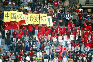 北京時間10月3日,在2003女足世界杯四分之一決賽中,中國女足0比1不敵加拿大隊(duì),抱憾告別本屆世界杯。圖為在波特蘭的中國留學(xué)生和華人華僑組成的啦啦隊(duì)打出橫幅為中國隊(duì)加油。作者:劉占坤
