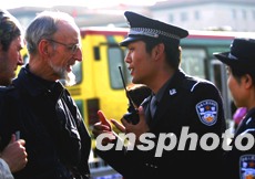 參加國慶值勤的北京警察學院學員,四日在天安門廣場為外國游人解答問題。“十一”期間首都警方加大了旅游景區(qū)的值勤力量,以確保游客安全。中新社記者:宋吉河