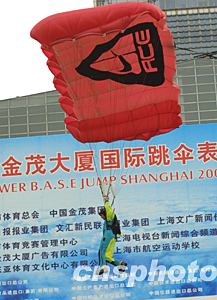 組圖:上海金茂大廈上演“中華第一跳傘”