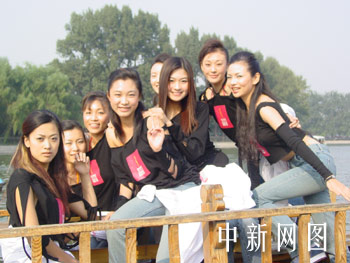 中新網(wǎng)10月5日電 今天(5日),人潮如織的北京什剎海,迎來了一批“特殊”的靚麗游人,這就是鳳凰衛(wèi)視“2003中華小姐環(huán)球大賽”入圍的50名佳麗。