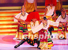 在香港慶祝中華人民共和國(guó)54周年國(guó)慶文藝晚會(huì)上,一臺(tái)融合中西音樂(lè)、舞蹈、歌唱、軍操及武術(shù)表演的綜藝節(jié)目,令觀眾目不暇給。圖為精彩紛呈的舞蹈《春回大地樂(lè)全城》。作者:洪少葵