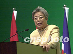 中國-葡語國家經(jīng)貿(mào)合作論壇(澳門)十二日在澳門舉行,中國國務院副總理吳儀出席中國商務部舉行的晚宴并發(fā)表講話。中新社記者:李剛