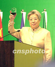 中國-葡語國家經(jīng)貿(mào)合作論壇(澳門)十二日在澳門舉行,中國國務院副總理吳儀在中國商務部舉行的晚宴上祝酒。中新社記者:李剛