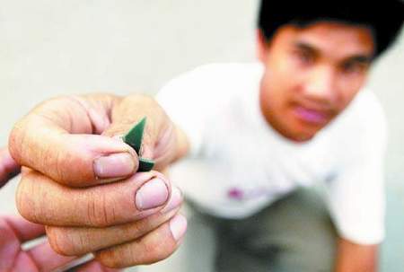 曾先生說(shuō),他在驚嚇過(guò)后才覺(jué)得全身麻痛,仔細(xì)檢查才發(fā)現(xiàn)自己多處掛彩。一些小碎片嵌進(jìn)肌肉里,身上綻開(kāi)多道血痕。他從右腿傷口拔出一塊指甲蓋大小的硬質(zhì)墨綠色碎片,告訴記者這就是爆炸的不明物體。
