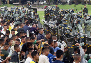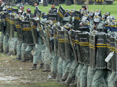 10月20日-21日,亞太經(jīng)濟(jì)合作組織領(lǐng)導(dǎo)人非正式會議將在泰國首都曼谷舉行,泰國軍警正在加緊進(jìn)行訓(xùn)練,以確保會議期間的安全。圖為10月13日,泰國軍隊和警察在曼谷舉行模擬示威演習(xí),以應(yīng)對可能爆發(fā)的游行示威活動。