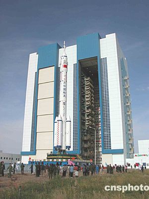 “神舟”五號緩緩離開總裝測試廠房 向發(fā)射塔架進發(fā)