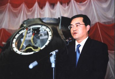 張慶偉在“神舟”四號飛船返回艙前