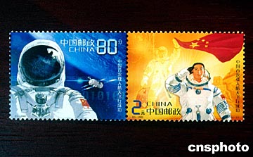 組圖:中國(guó)發(fā)行"首次載人航天飛行成功"郵票