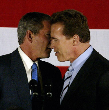 據(jù)路透社消息,布什同施瓦辛格進(jìn)行了一個(gè)半小時(shí)的私人會(huì)面,隨后兩人前往圣博納迪諾向公眾發(fā)表演講。演說(shuō)中,布什稱與施瓦辛格有著眾多“共同語(yǔ)言”。