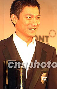 2003年萬(wàn)寶龍國(guó)際藝術(shù)贊助大獎(jiǎng)十月十七日在香港舉行頒獎(jiǎng)儀式,香港明星劉德華榮獲大獎(jiǎng)。中新社記者:錢(qián)興強(qiáng)