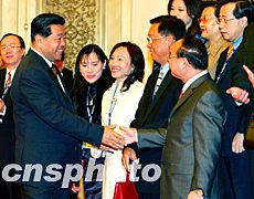 中新社北京十月二十一日電(記者邢利宇)中共中央政治局常委、全國政協(xié)主席賈慶林今天在人民大會堂會見了臺灣工商建研會、女企業(yè)家協(xié)會、農(nóng)漁業(yè)協(xié)會大陸經(jīng)貿(mào)考察團(tuán)。