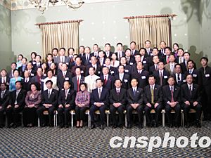 由于在座的人士長期在國外生活和工作、學(xué)習(xí),都很關(guān)心中國的發(fā)展變化,胡錦濤主席向大家簡要地介紹了中國國內(nèi)喜人的形勢和中共中央最近為了繼續(xù)推進改革開放和現(xiàn)代化建設(shè)所作出的三項重大決策。