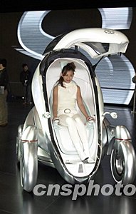 日本汽車龍頭企業(yè)豐田公司在東京國際汽車展上推出專門為2005年日本愛知世博會設(shè)計的新概念車,這種一人單乘的新概念車車身角度可自由升降,構(gòu)成不同的精美造型。中新社記者:王健