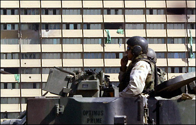 象征美軍權(quán)力的拉希德酒店遭明目張膽地襲擊,進一步動搖美國穩(wěn)定伊拉克的努力,伊拉克人指這與華府不把權(quán)力交還給伊拉克人有關(guān)。(據(jù)香港文匯報)