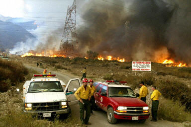在森林大火的威脅下,4200多名當(dāng)?shù)鼐用癖黄瘸冯x,火場(chǎng)附近的幾條州際高速公路也被關(guān)閉,大火產(chǎn)生的濃煙籠罩了加州南部的幾個(gè)小鎮(zhèn)。