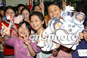 據(jù)香港媒體消息,機(jī)場有逾800名學(xué)生、教師及市民迎接楊利偉。