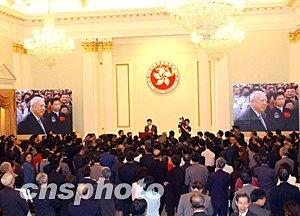 歡迎酒會上,先播出神舟五號升空及楊利偉在太空的片段。行政長官董建華致歡迎詞時,首先表示用掌聲代表香港六百八十萬市民,歡迎祖國榮耀、民族的英雄楊利偉和他的同事的到來。同時,他感謝中央政府的關(guān)懷,令楊利偉及航天代表團可以在短時間到港,這是對香港的巨大鼓舞和支持。他說,親眼目睹這驕人的成就,一定大大加強香港市民尤其是年輕一代的民族自豪感,大大促進中華民族的自尊和自信。香港市民一直關(guān)注祖國的發(fā)展和進步,為祖國的每一項成就而高興和驕傲。他希望楊利偉和他的同事再到太空時,回望地球,可以看到香港這顆“東方之珠”的光彩。