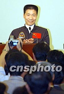 中國首名航天員楊利偉10月31日在香港出席歡迎酒會。向在場的四百多名嘉賓暢談遨游太空奇妙旅程,博得掌聲陣陣。作者:洪少葵