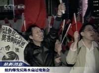 中新網(wǎng)11月1日電 據(jù)央視國際報道,美國紐約各界人士約上千人于當(dāng)?shù)貢r間10月31日晚在臺灣當(dāng)局領(lǐng)導(dǎo)人陳水扁所住的曼哈頓華道夫-阿斯多里亞飯店前舉行抗議示威,反對他借“過境”美國之機搞“臺獨”。