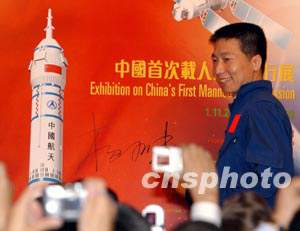 另外,還有不少圖片介紹中國首飛航天員楊利偉的訓(xùn)練、生活和家庭,以及其它航天員的情況。胡世祥在開幕式上形容,現(xiàn)任北京航天醫(yī)學(xué)工程研究所所長、中國載人航天工程航天員系統(tǒng)總指揮宿雙寧“專門折騰航天員”。在他的“折騰”下,中國已經(jīng)有十四位航天員。