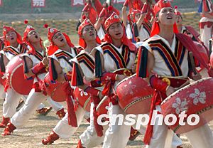 駐港部隊表演威風(fēng)鑼鼓。中新社記者:錢興強