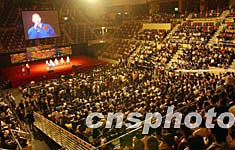 香港中、小學(xué)生與楊利偉及航天科學(xué)家11月3日在香港伊利莎白體育館舉行見面會(huì),圖為小學(xué)生向楊利偉及航天科學(xué)家提問。 中新社記者:錢興強(qiáng)