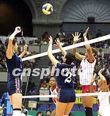 中國女子排球隊(duì)十一月三日下午在日本鹿兒島進(jìn)行的世界杯賽事中,直落三局輕取剛剛露出“黑馬”之相的多米尼加隊(duì)。中國女排拿手的快攻戰(zhàn)術(shù)令對(duì)手防不勝防。中新社記者:王健