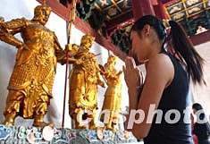 金秋時節(jié)在杭州參加新絲路世界模特大賽的中國姑娘,到江南名剎靈隱寺敬拜金剛。這里的古代傳說護法金剛們,素有威武不能屈的美譽,歷來倍受女性們的愛戴。作者:賈國榮