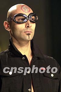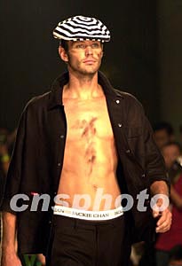 成龍系列男裝(二00四年春夏季男裝)中國揭幕式暨時(shí)裝展十一月五日晚在廣州舉行,外籍男模激情演繹“龍旋風(fēng)”時(shí)裝。作者:陳文