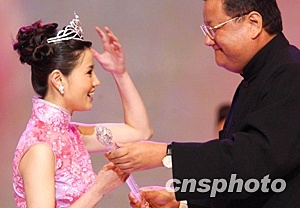 中新網(wǎng)11月9日電 8日晚,由鳳凰衛(wèi)視主辦的首屆“中華小姐環(huán)球大賽"總決賽頒獎(jiǎng)晚會(huì)在香港會(huì)展中心舉行。進(jìn)入總決賽的12名選手經(jīng)過(guò)激烈角逐,37號(hào)選手江欣榮贏得冠軍。亞軍和季軍分別由來(lái)自吉林的31號(hào)選手胡古玥和來(lái)自黑龍江的4號(hào)選手谷雨獲得。