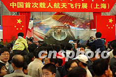 十一月九日,“神舟”五號返回艙亮相第五屆上海國際工業(yè)博覽會,中國首次載人航天飛行展也同時在滬展出,吸引了眾多市民一早就來到展會現(xiàn)場一睹“神五”的風采。作者:湯彥俊